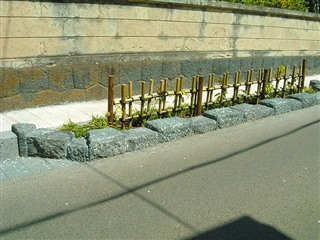 | 溶岩植栽縁石 | 溶岩境界石、サビ御影石舗石 | サビ御影石舗石 |