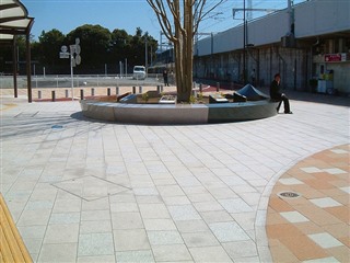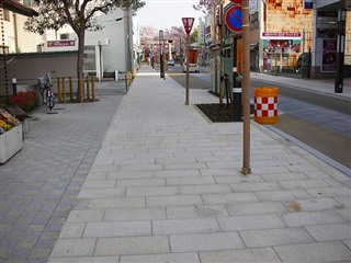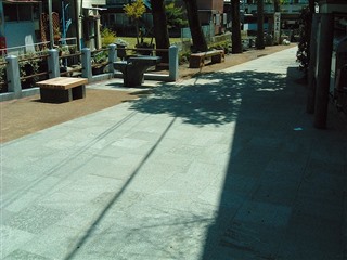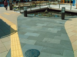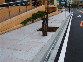 | 桜御影石、グレー御影石歩道 | 赤御影石道標 | 黒御影石、グレー御影石歩道 |
