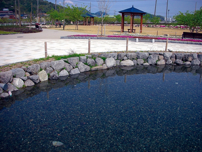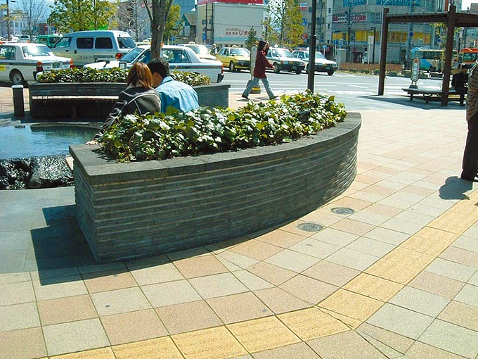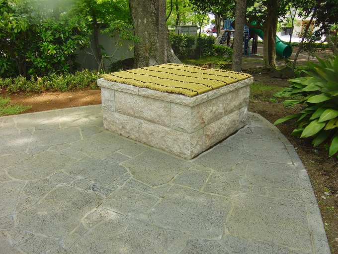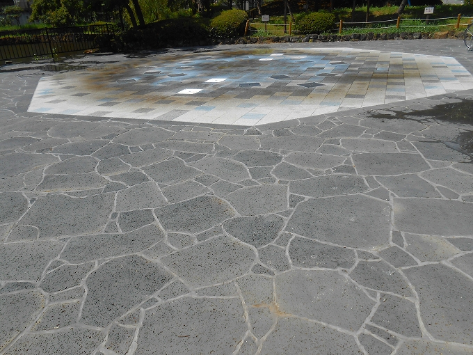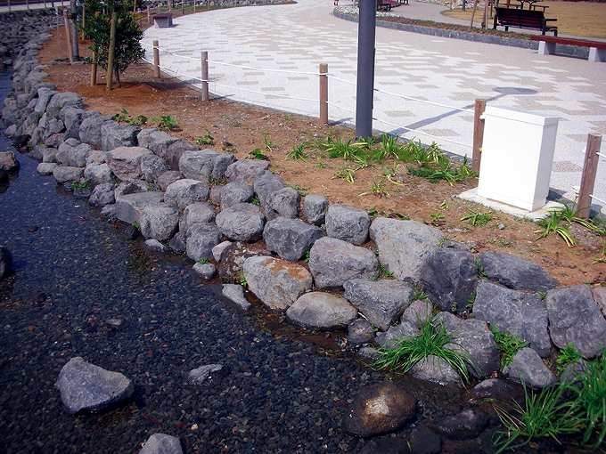 | 溶岩水飲石 | 溶岩乱形床(親水部) | サビ、桜御影石広場床 |