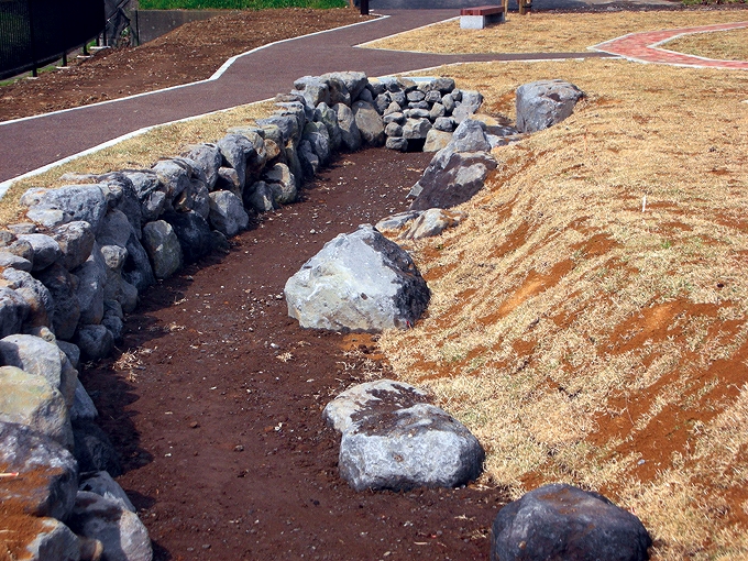 | 溶岩床乱張り | 大沢石水路石積み | サビ御影石間知石積み |