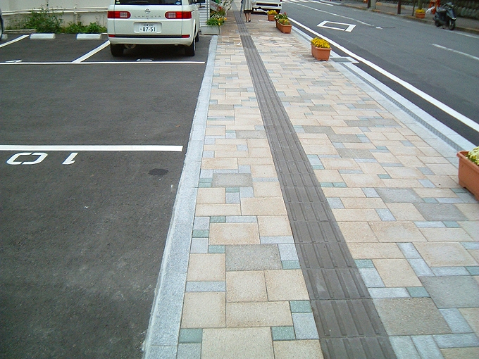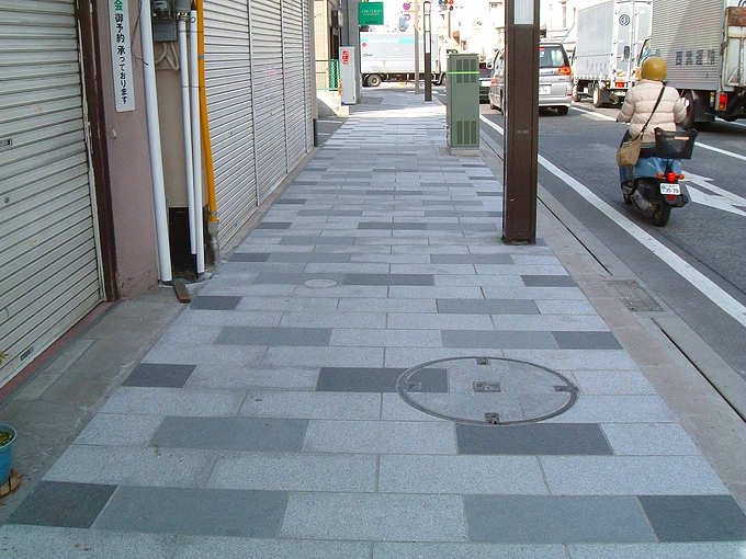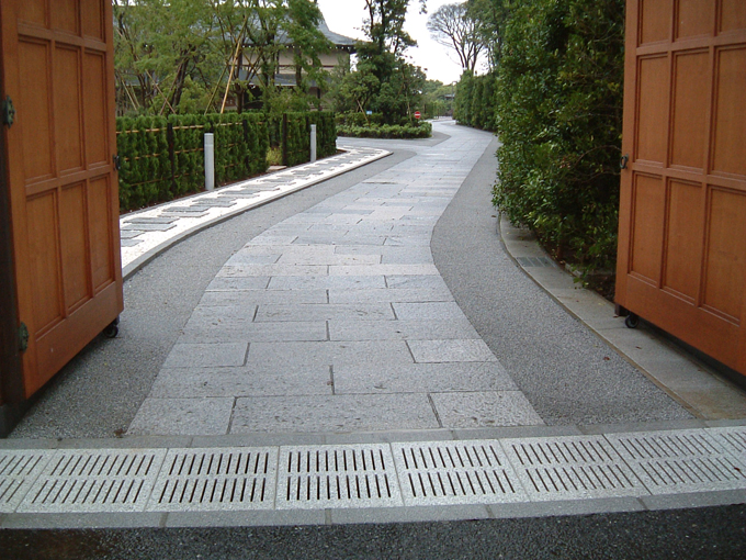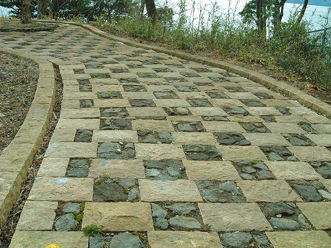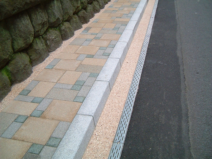 | 黒御影石舗道 | 白御影乱形石の歩道 | サビ御影石舗道 |